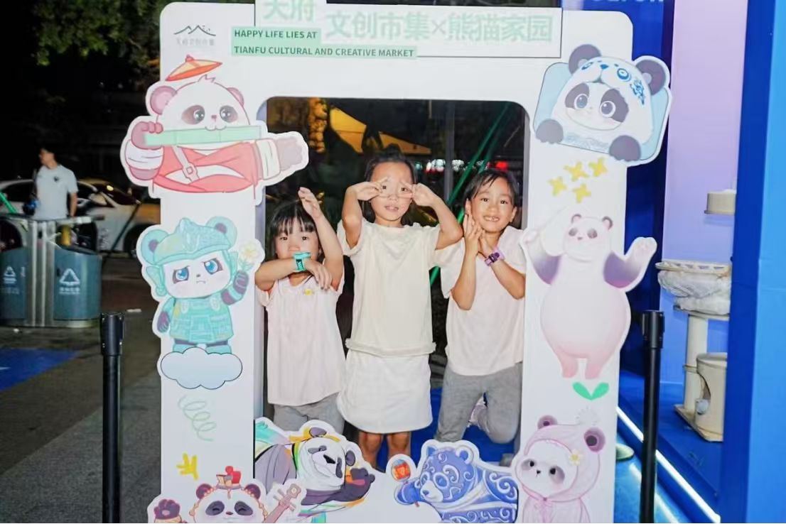 而在交子大道“数字文创季”的“熊猫家园”主题快闪区,首发亮相了“辛尼”、“铠萌”等为原型的多款IP衍生文创产品,涵盖贵金属、徽章、水杯等。“这两天已经有很多市民游客来了解产品,他们都很想买,其中贵金属、徽章和水杯的人气最旺。”现场工作人员钱宇介绍。此外,“熊猫家园”与海尔旗下品牌统帅(Leader)联合共创的“熊猫洗衣房快闪店”,以“文化+科技”的理念,展现了IP产业化落地的新路径,也成为天府文创市集跨界融合的一大亮点。