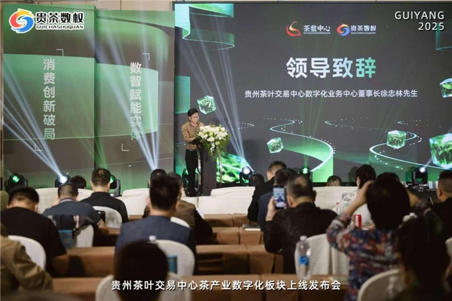 本次发布会以 “科技赋能茶韵,数字激活实体” 为核心基调,会场融合 “科技蓝” 与 “茶绿色” 视觉元素,彰显数字化与茶产业的深度交融。贵州茶叶交易中心数字化业务中心董事长徐忠林在致辞中指出,板块建设始终以 “合规为基、实体为锚”,依托省级交易场所资质与区块链技术,破解传统茶产业流通低效、库存积压、融资困难等痛点,推动茶资产从 “沉睡” 到 “流动” 的价值重塑。